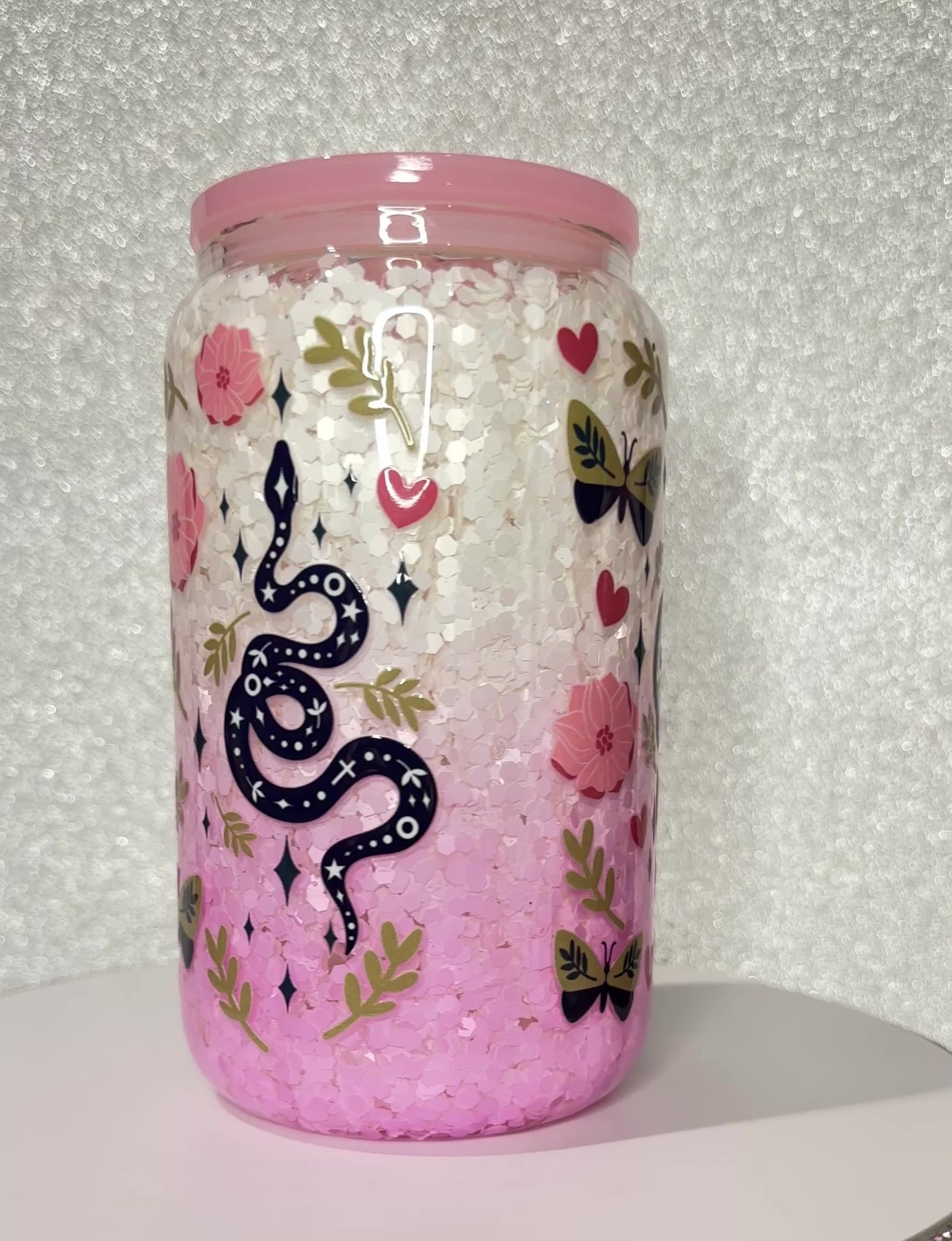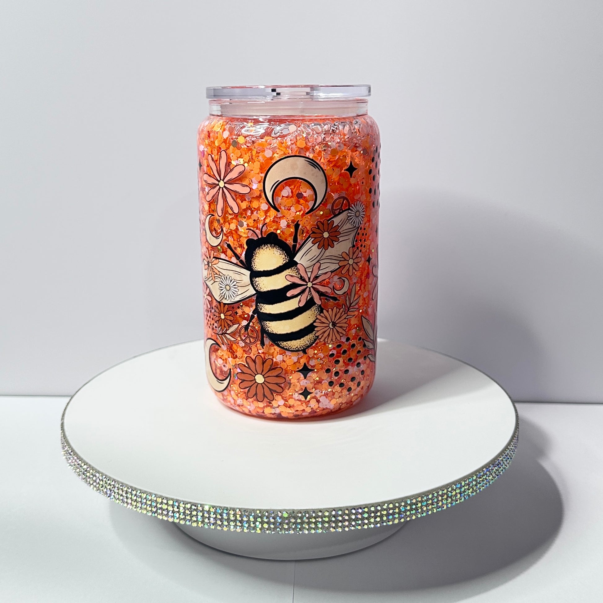 16oz glass snow globe cups. Our non toxic liquid is suitable for children of all ages.